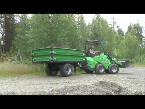 Прицеп-самосвал для мини-тракторов Avant доступен в двух вариантах: грузоподъёмностью 1200 и 1800 кг. Оба варианта поставляются в комплекте с гидравлическим подъёмным механизмом. Борта прицепа при необходимости снимаются. Второй уровень бортов поставляется дополнительно к модели грузоподъёмностью 1200 кг и включён в базовую комплектацию модели на 1800 кг.